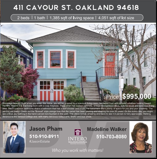 Rockridge beauty! Right when you enter this home, you will be greeted by a spacious living room, hardwood floor with pictured windows looking toward the hills. Next to it is that living room with a cozy fireplace. The kitchen has custom cabinets, vintage Wedgewood stove, butcher block and spacious dining area. The 2 spacious bedrooms share a bathroom that has a stall shower and a tub! The basement offers plenty of space for you and your creativity. The yard is just lovely! Check out the “Bonsai” style orange tree that the owner has been pruning and shaping for over 25 years! On the sunny day, you might see a Blue Jay bathing in the hand carved rock fountain in the yard. This place is truly amazing and have to see it in person to fully appreciate. Walking distance to the famous College ave. with many delicious restaurants, BART and bus stops.